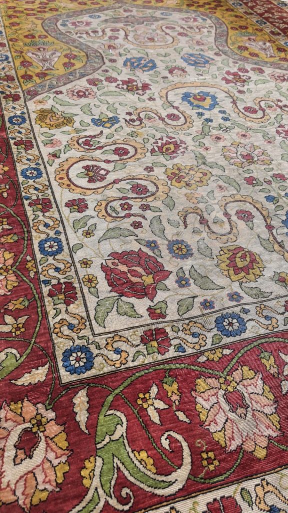 Les tapis Kumkapı, également connus sous le nom de tapis « Çinili » ou « tapis chinois », ont été produits dans l’Empire ottoman au cours des XVIème et XVIIème siècles. Ces tapis ont été initialement commandés pour le palais impérial et ont été conservés dans la Trésorerie de Kumkapı, stocké avec les trésors impériaux. La Trésorerie ottomane de Kumkapı a été créée au XVIème siècle, en tant qu’atelier où des artisans créaient des objets de luxe pour la cour ottomane.