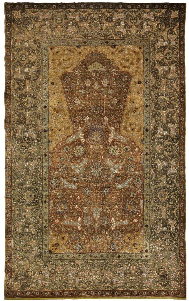 Tapis de Zareh Penyamin, soie et métal, autour de 1910, vendu sur Bonhams