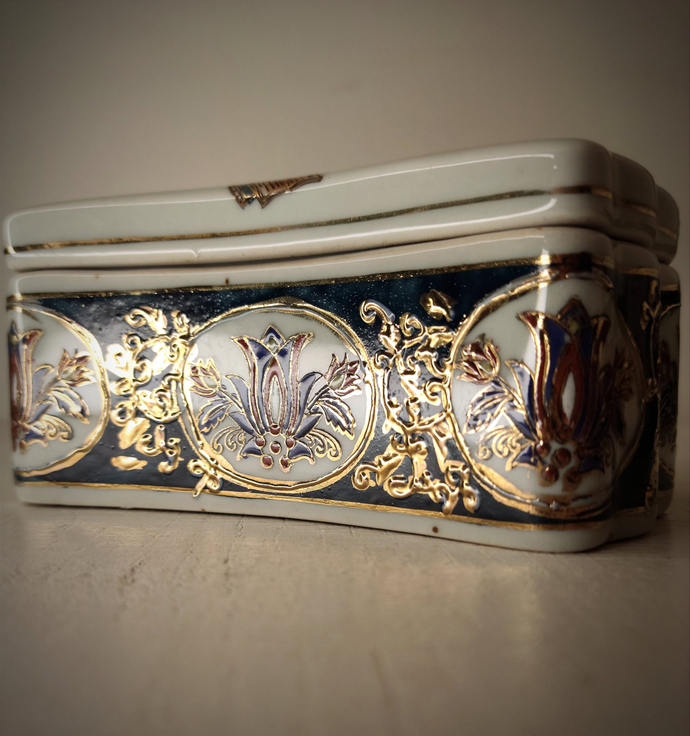 Boîte à bijoux Satsuma China en porcelaine