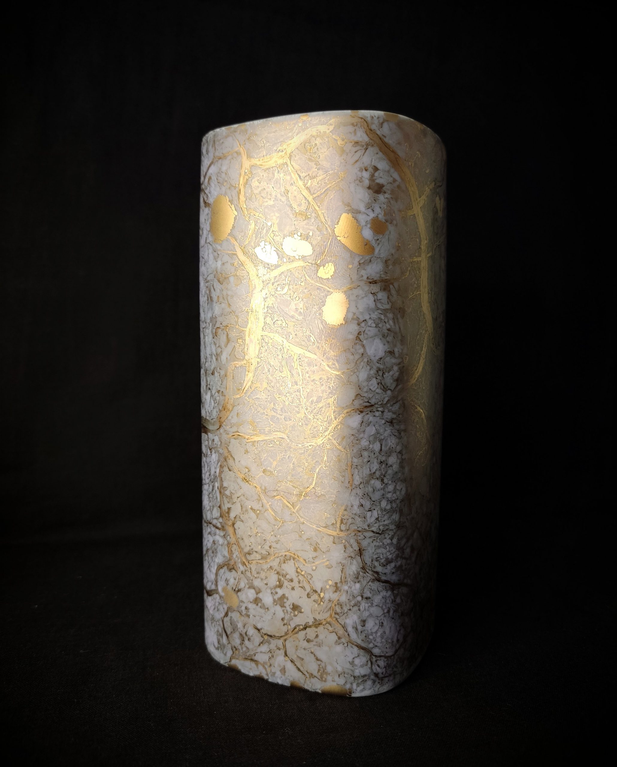 Dresler a développé une technique d’émaillage très particulière: peint à la main avec de l’or véritable et un vernis satiné gris-violet.