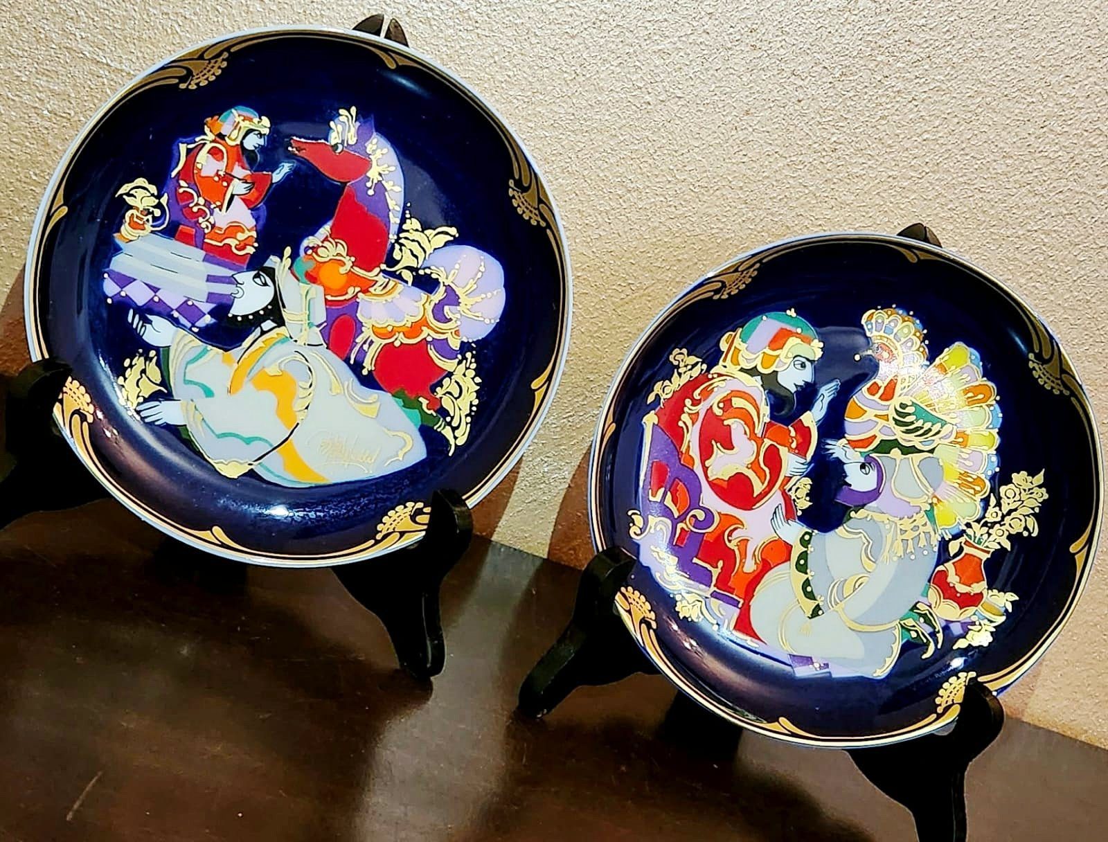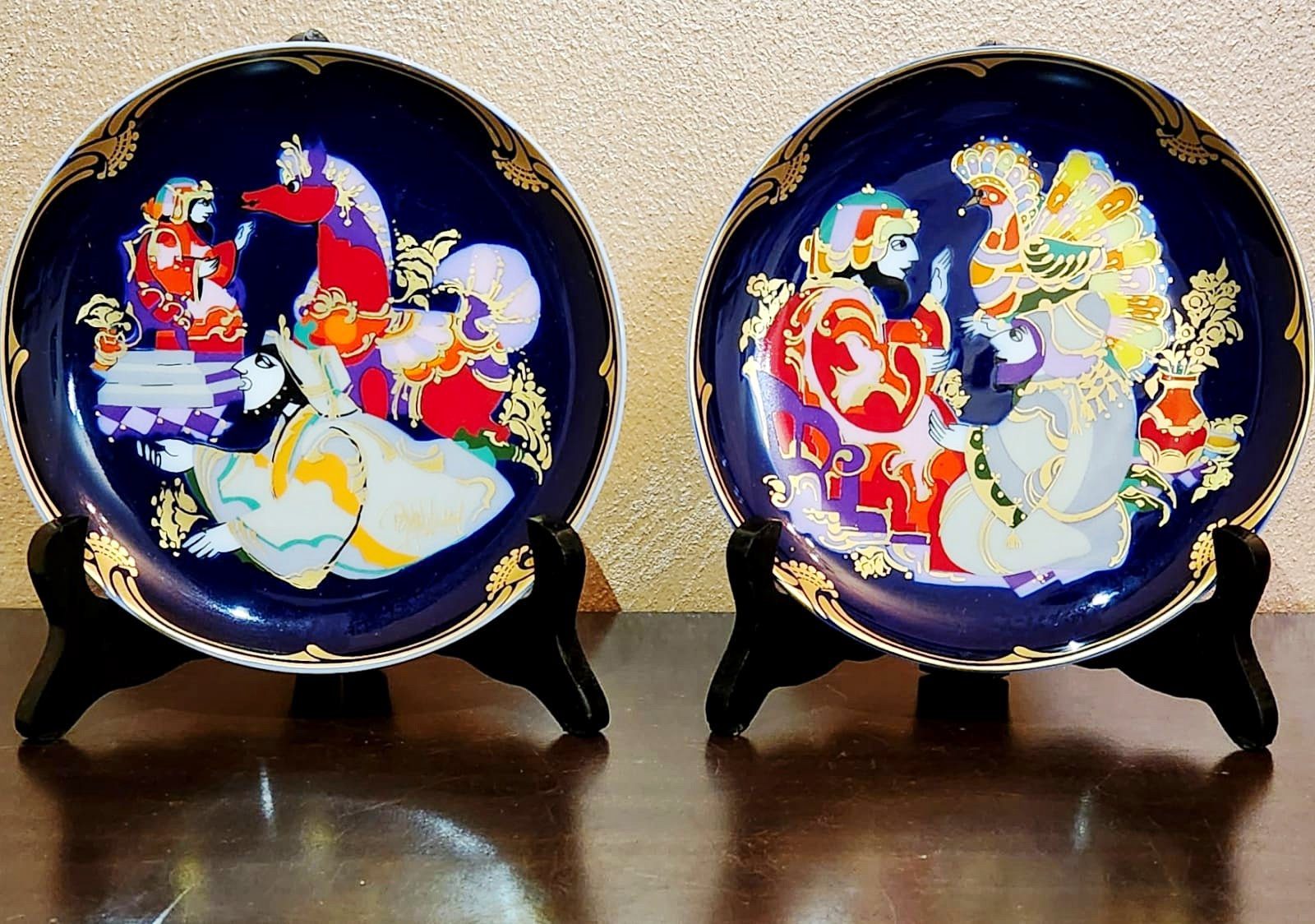 Lot de deux assiettes de la série « ZAUBERPFERD » (Le chevaul Magique » en porcelaine Allemande de chez ROSENTHAL avec STUDIO-LINIE.