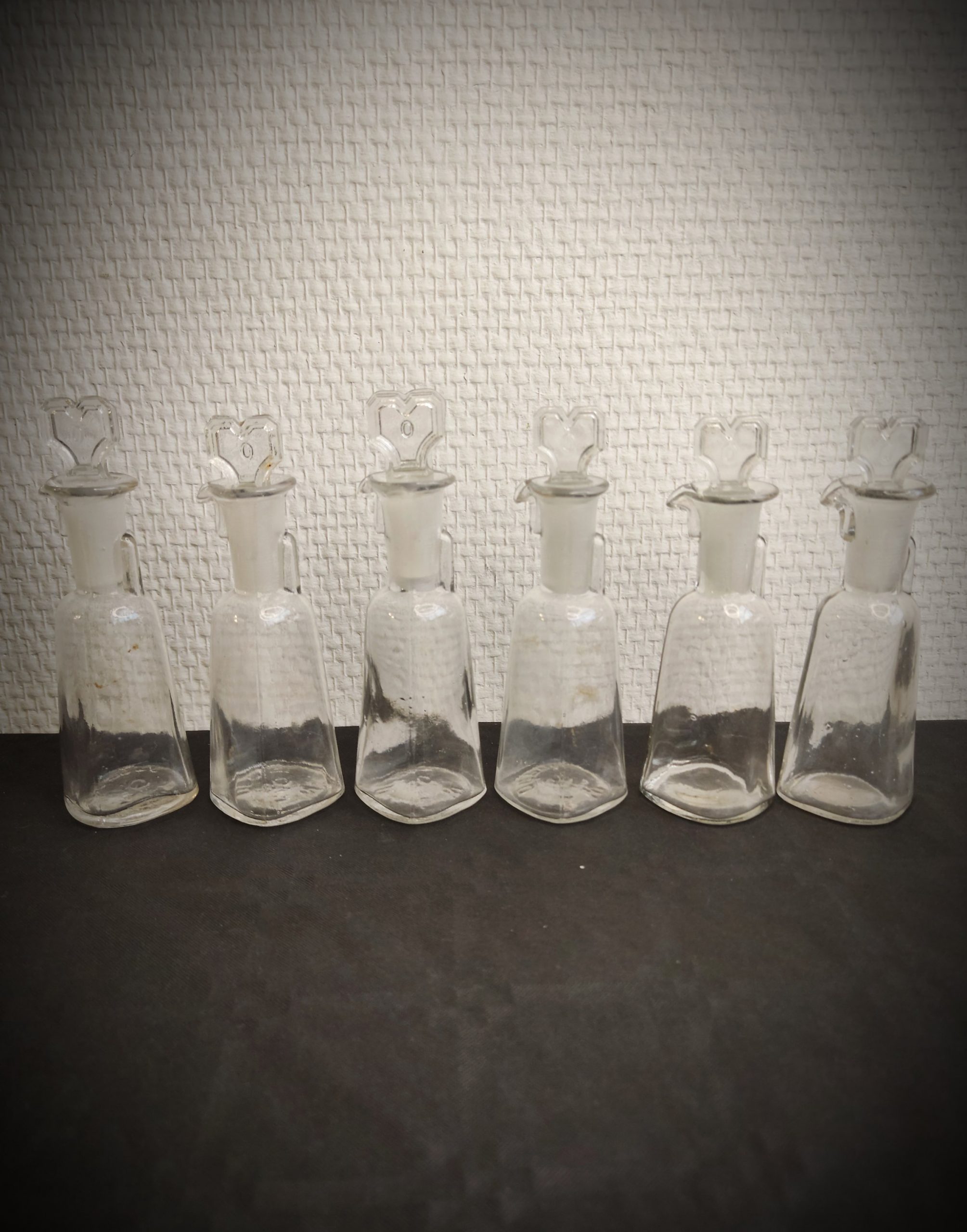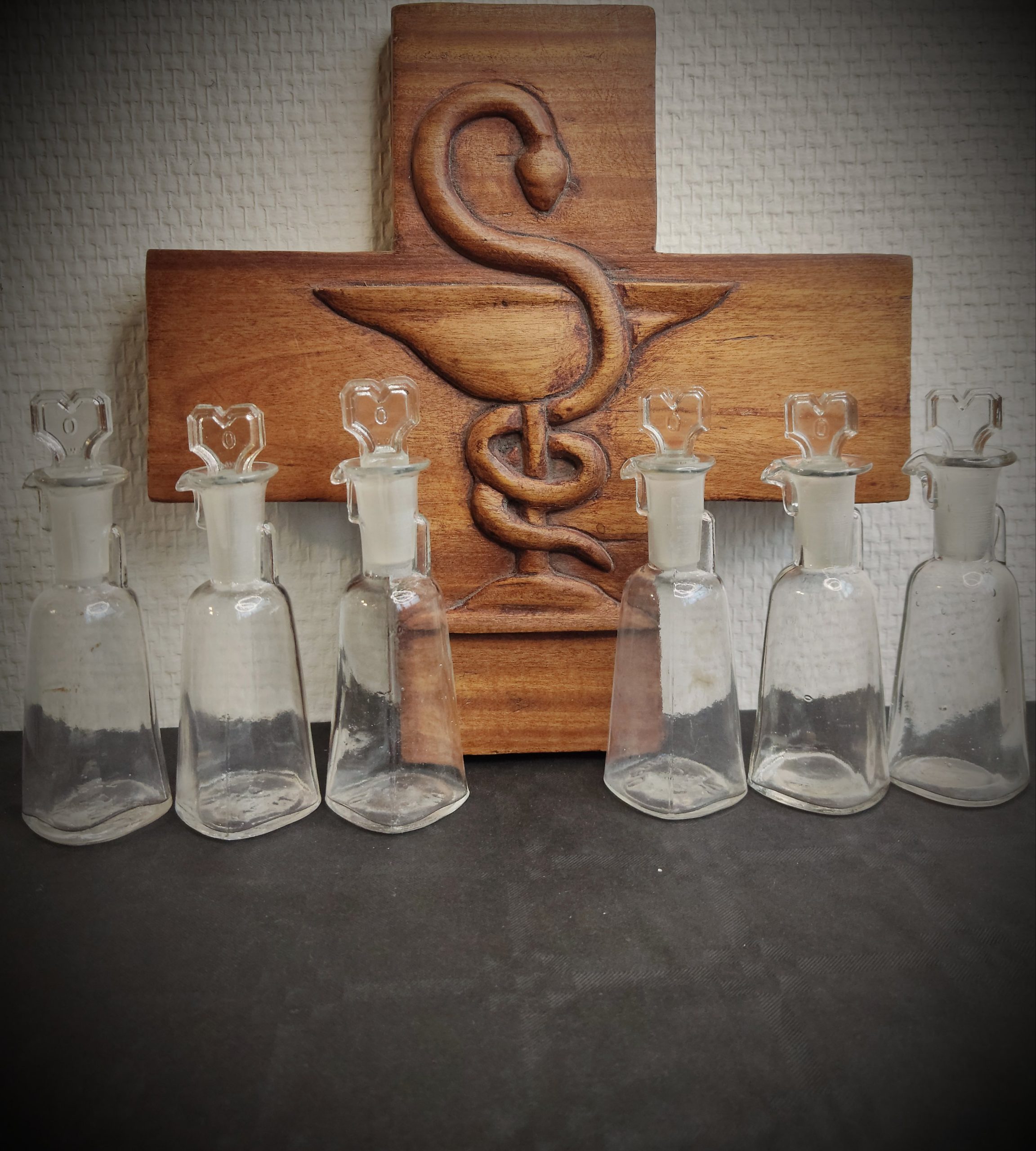 Lot 6 flacons d’apothicaire antique verre manganèse