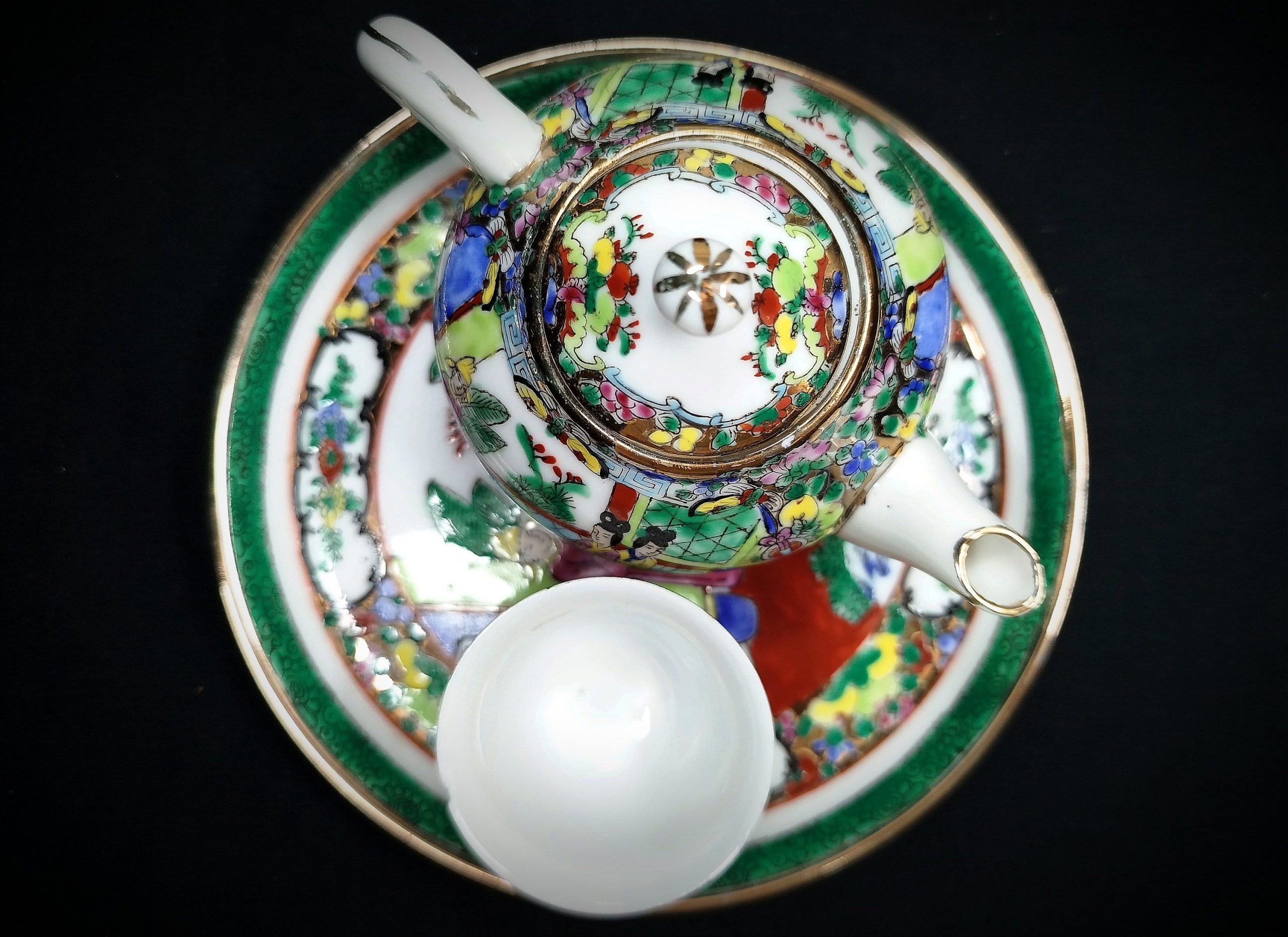 Service à thé/saké miniature en porcelaine vintage avec pot, tasse et assiette assortie