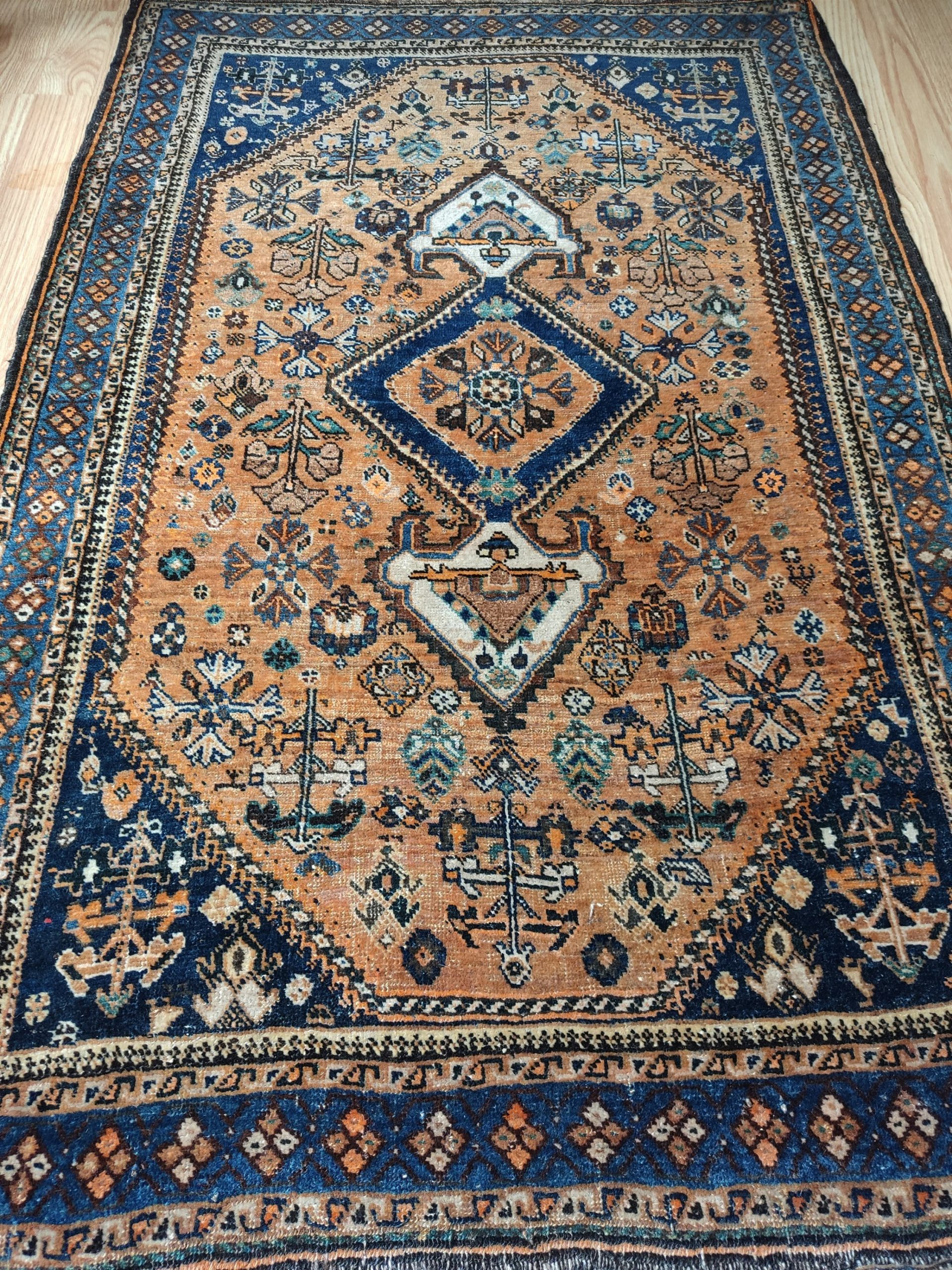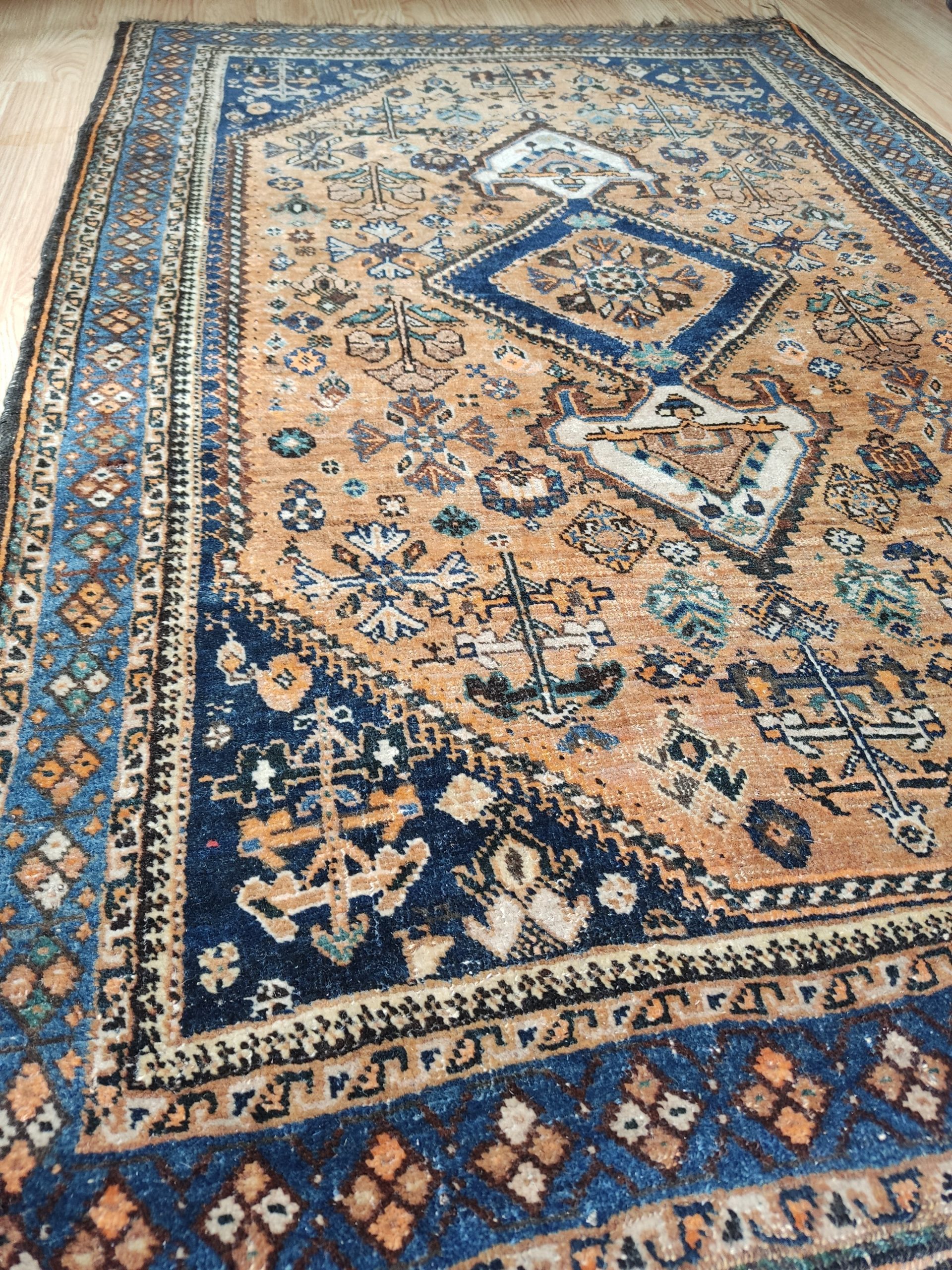Cette rare pièce de collection est d’origine persane, faite par un(e) tisserand(e) de la tribu « Luri » (les Lurs, de Luristan) une des tribus renommées des Qashqais (Ghashghai ou Kachkaïs)